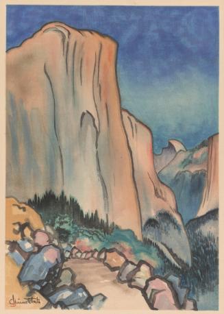 El Capitan: Yosemite National Park, California, 1930, by Chiura Obata (American, 1885–1975). Ink and colors on paper. Asian Art Museum, Gift of Dr. Stephen A. Sherwin and Merrill Randol Sherwin, 2010.13. Photograph © Asian Art Museum of San Francisco.